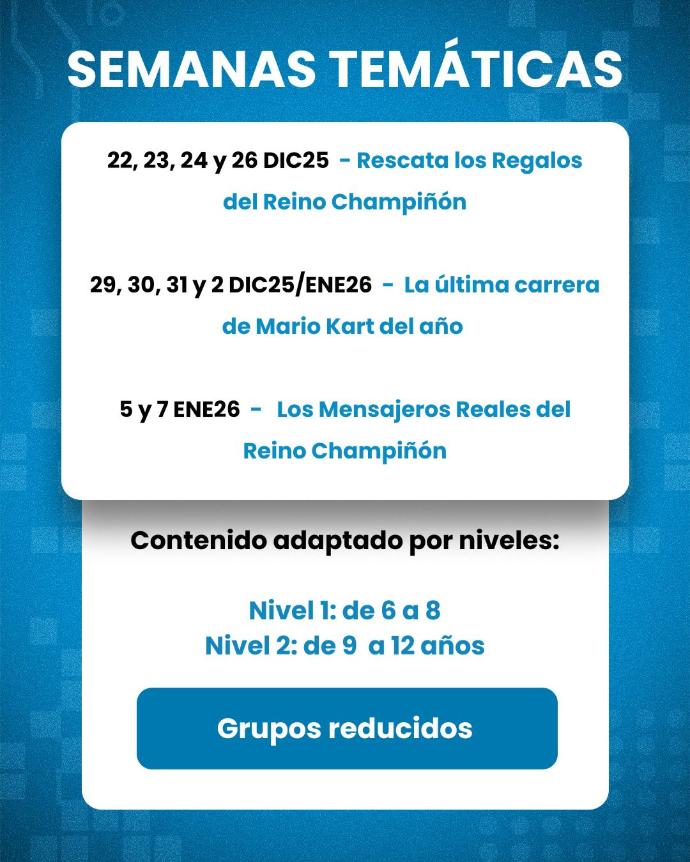 Trabajaremos como mínimo tres tecnologías distintas cada día, para que los alumnos puedan disfrutar de diferentes experiencias.