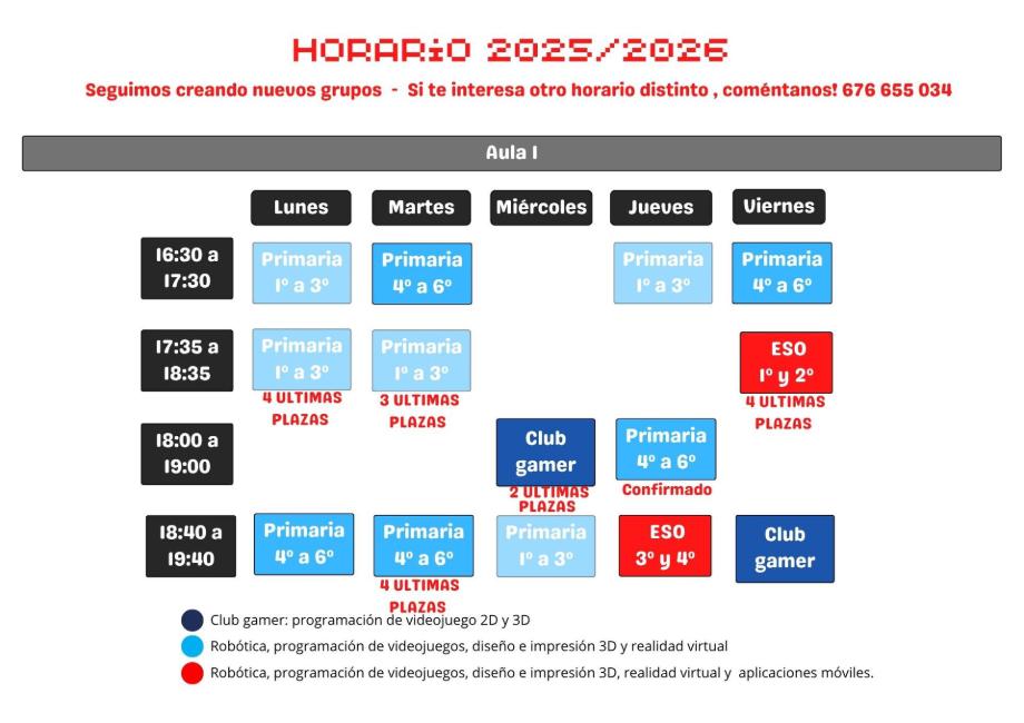 Durante todo el curso continuamos abriendo nuevos grupos si tienes un interés especial en un día y hora concretos puedes comentarnos e intentaremos hacer lo posible.